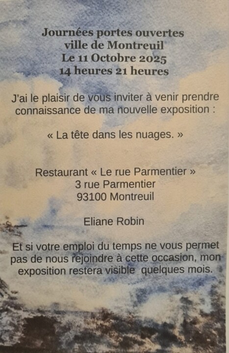 Exposition Eliane Robin au restaurant "Le rue Parmentier" 31 avenue de la Résistance 93100 MONTREUIL (lerueparmentier.com)